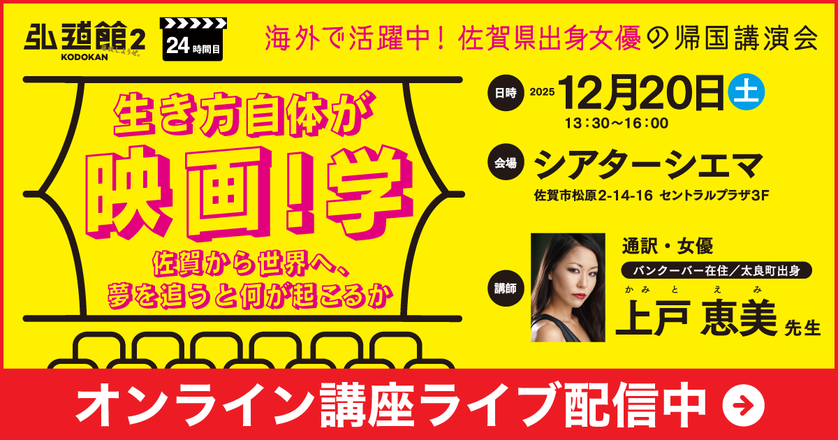 夢。皆さん、持っていますか。考え中?すでに夢に向かってる?あるけどまだ胸に秘めてる?今回の弘道館2は、佐賀の若者たちにぜひ会って欲しい、夢を追いかけ続けている先生を海外からお呼びします。