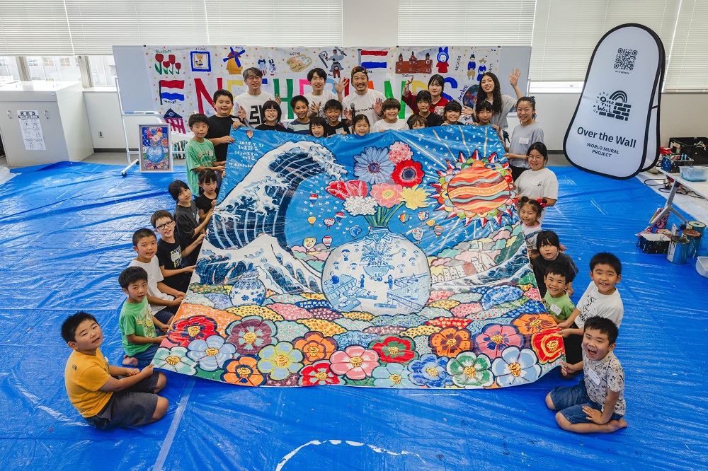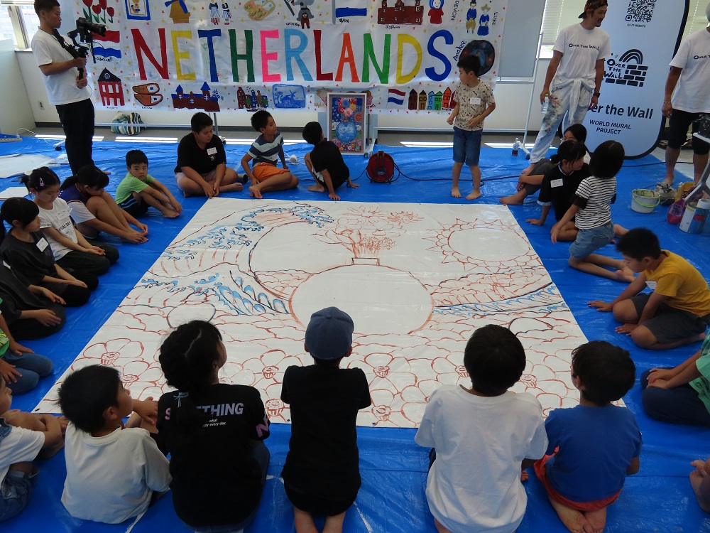 子どもたち一人ひとりの感性が、色になり、形となって、見る人たちをハッピーにするカラフルで鮮やかな作品が仕上がりました。まさに、一人じゃ絶対にできない、みんなとだから表現できた世界観です。描き上げた絵はオランダのプリンセンホフ博物館に飾られる予定で、壁画プロジェクトに参加する高校生たちがオランダに持って行ってくれます。